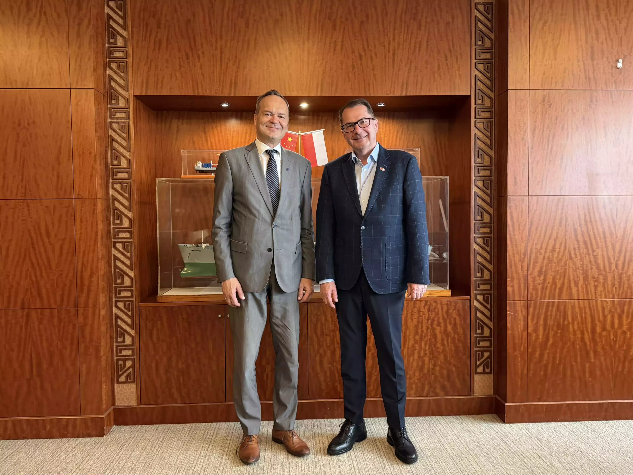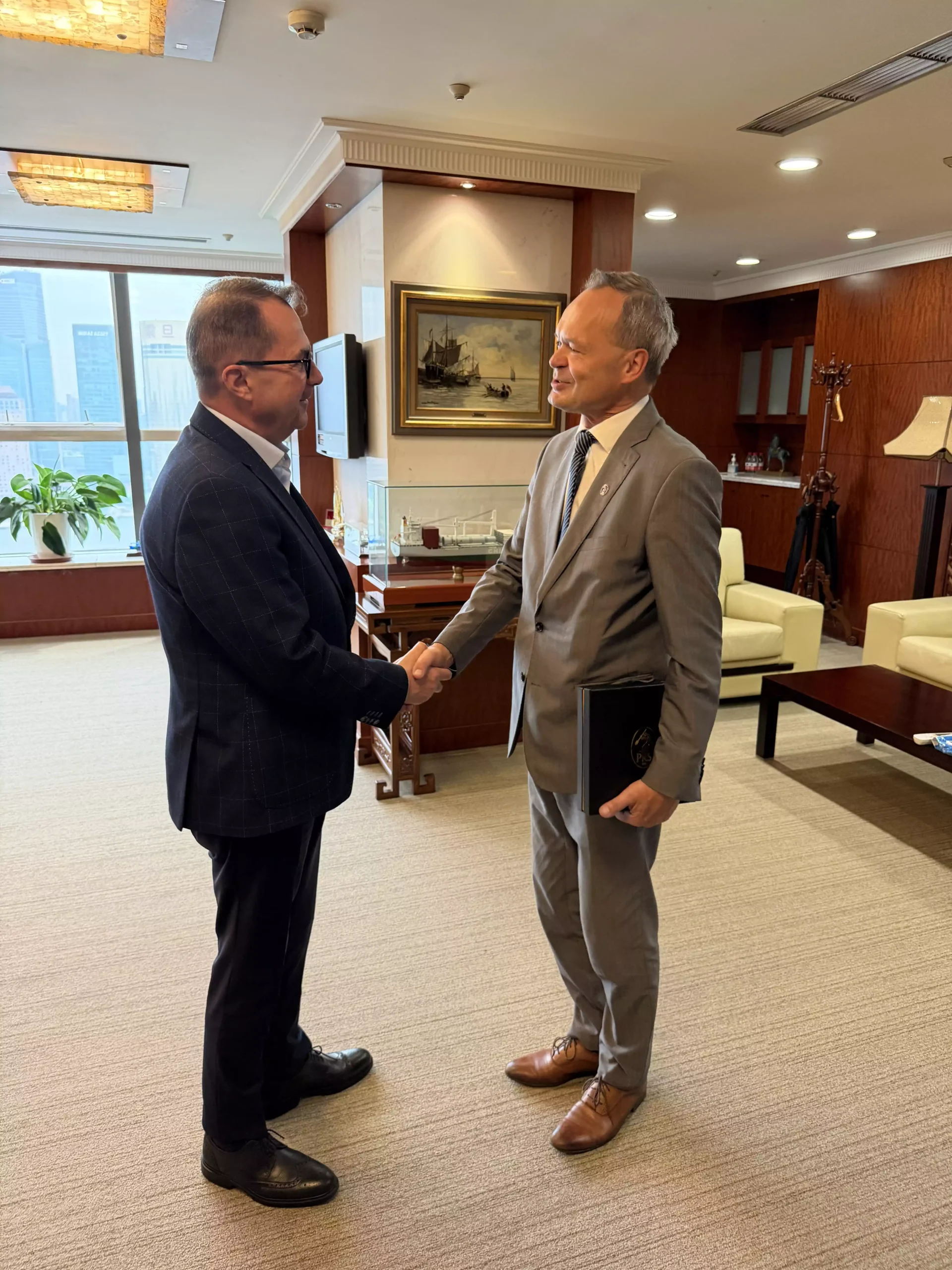 Dnia 27.04.2026 w siedzibie Chińsko-Polskiego Towarzystwa Okrętowego S.A. Chipolbrok w Szanghaju odbyło się ważne spotkanie prezesa Polskiego Rejestru Statków, Grzegorza Pettke, z dyrektorem generalnym Chipolbrok, Radosławem Chmielińskim. Rozmowy koncentrowały się na podsumowaniu dotychczasowej długoletniej współpracy oraz wyznaczeniu nowych kierunków wspólnych działań.