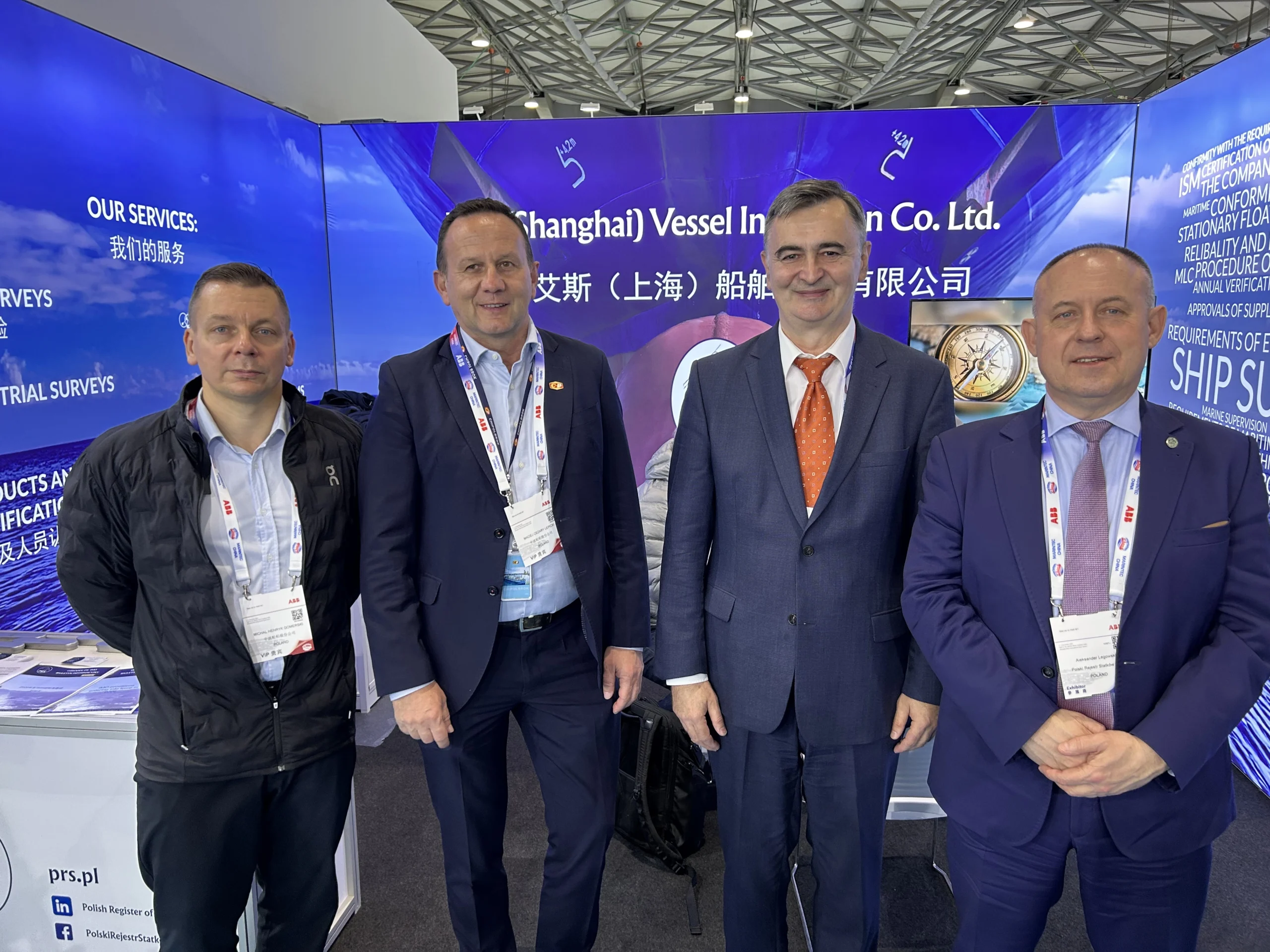 In addition to the Shanghai Office team — where Deputy Manager Chong Wang and Business Development Specialist Karol Pokora hold key roles — the exhibition was also attended by representatives of PRS Headquarters in Gdańsk. Headquarters support included Aleksander Łęgowski, Director of the Ships Division, Bartosz Dombrzalski, Deputy Manager of the Machinery and Equipment Department, and Kacper Dziemianko, Head of the Product and Personnel Certification Office, together with Jakub Skiba, Technical Assistant at the Certification Bureau.